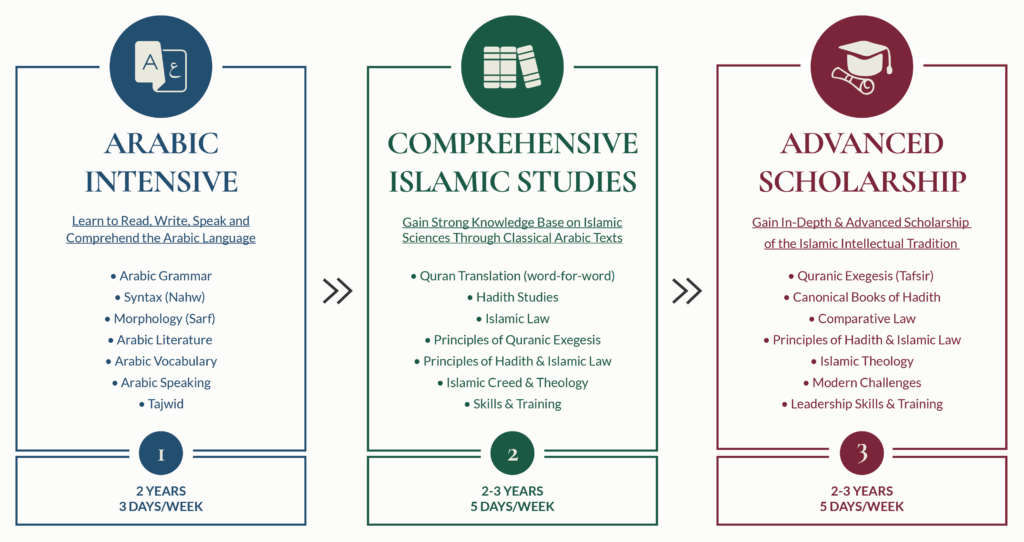 Graduates who complete the full course, including all three core components, will be awarded a Licence in Islamic Scholarship (Shahādah al-Alimiyyah), and will be equipped with the knowledge and skills to serve as scholars, teachers, and community leaders.